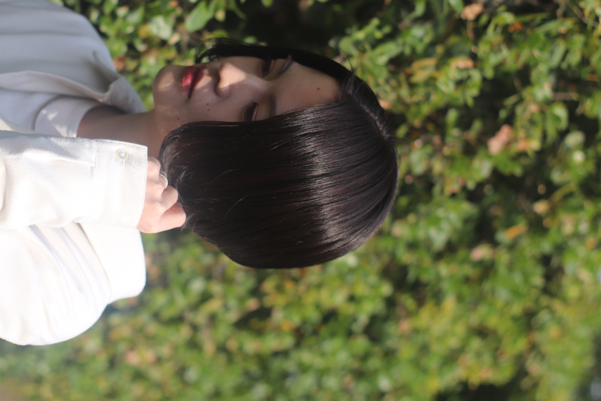 暗めカラーの前下がりショート。