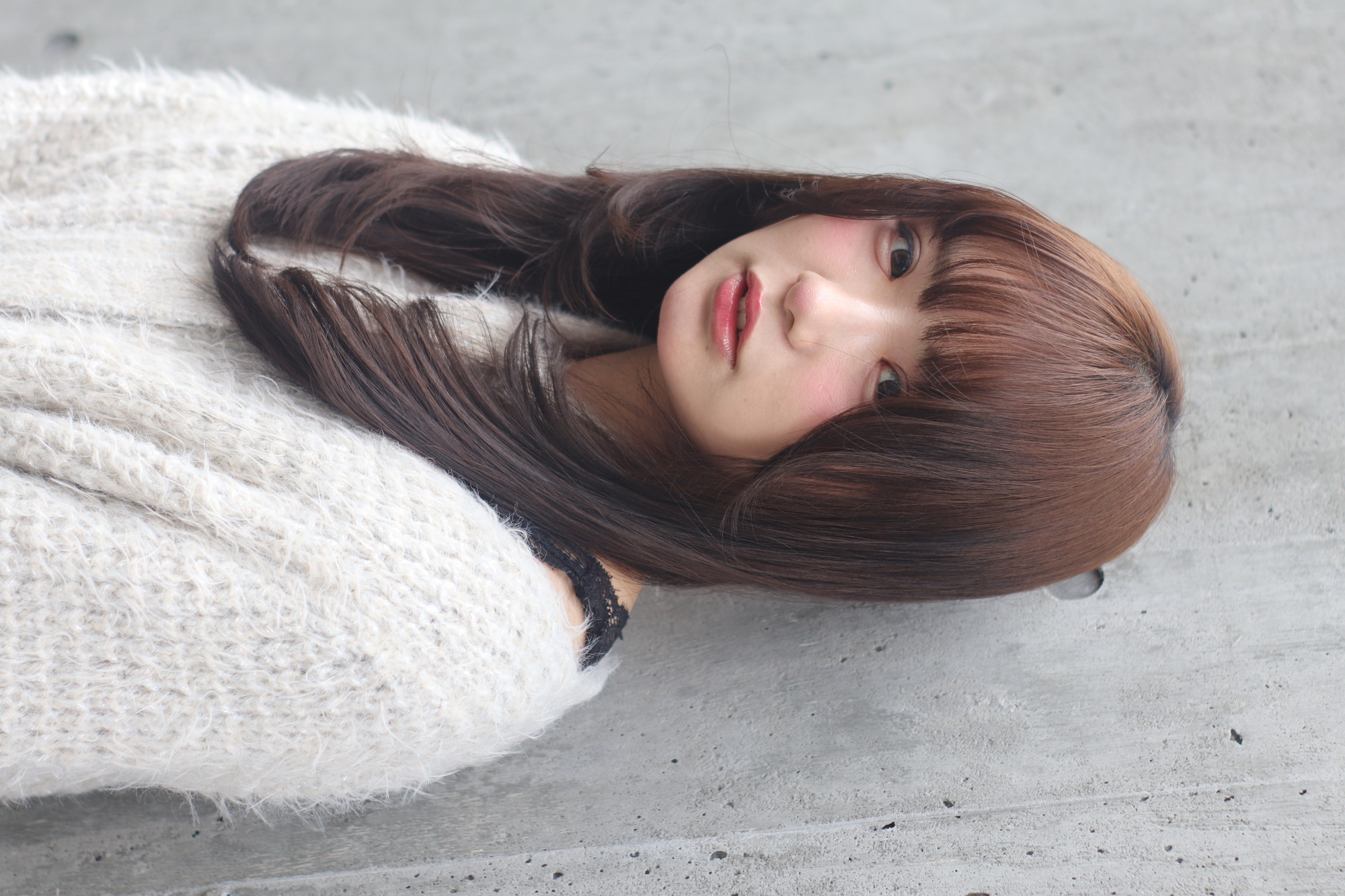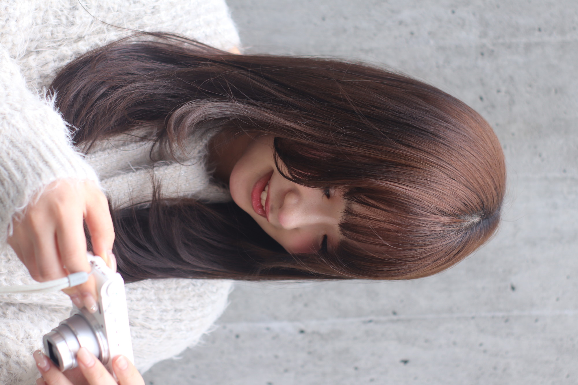 撮影のオフショットです。モデルさんのデジカメでも撮りました。かわいいイメージも大人なイメージも両方大丈夫なロングレングスのスタイルです。