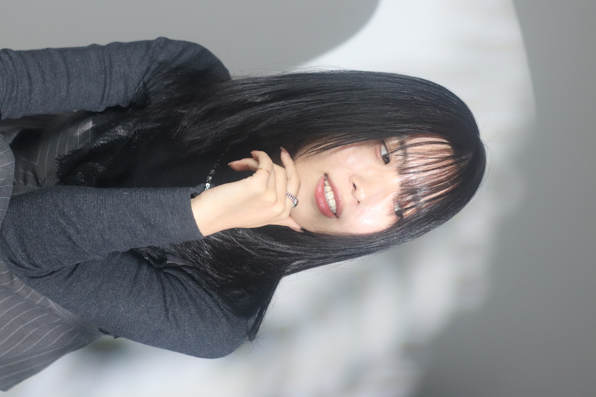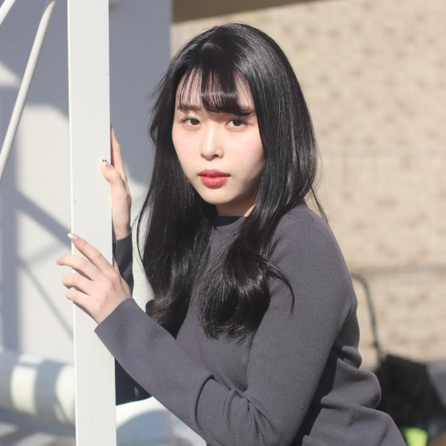 アッシュブラックでカラーしています。ブルーベースの方におすすめ。カットはレイヤー控えめで。上品なイメージになります!